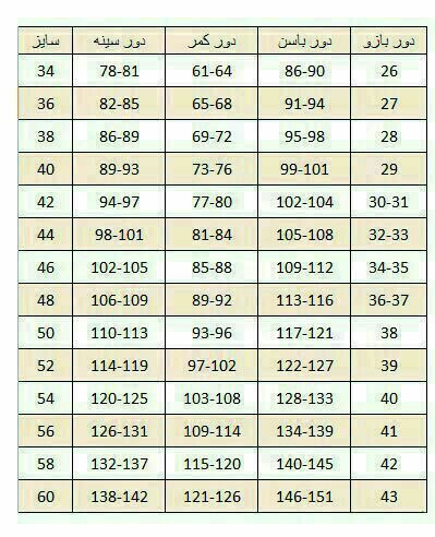 سایز2(38.40) سایز 3(42.44 ) سایز4(46) سایز5(48)