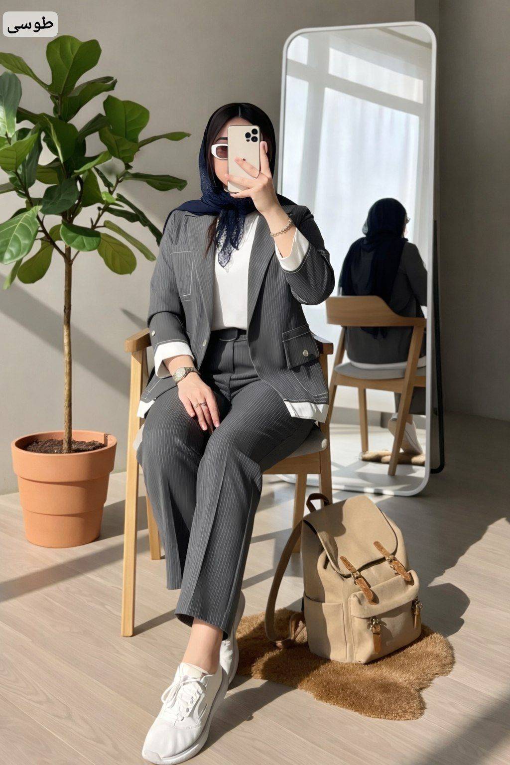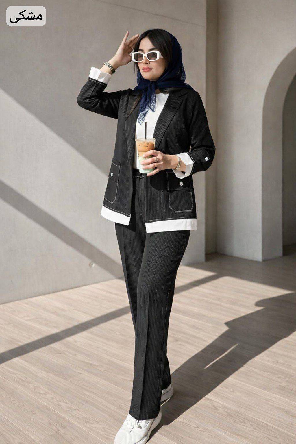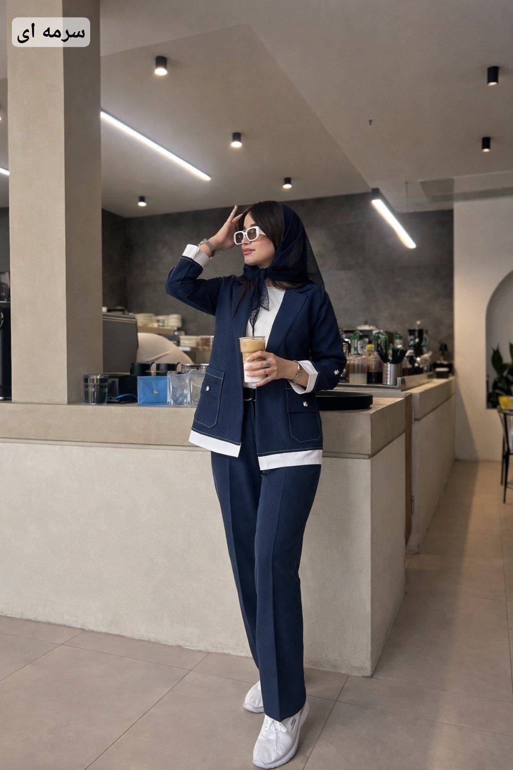 قد کت حدود ۷۵✅️دورسینه حدود ۱۰۸✅️ قد آستین از یقه حدود ۷۰✅️ قد شلوار ۱۰۰✅️ دور ران ۶۰✅️ پشت کمر شلوار کشی✅️ دو جیب کاربردی ✅️