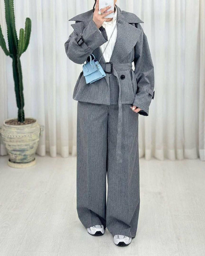 قد کت ۶۰✅️دورسینه ۱۱۰✅️ قد آستین از یقه ۶۶✅️ دور بازو ۴۰✅️ قد شلوار ۱۰۰✅️ دور ران ۶۰✅️ پشت کمر شلوار کشی✅️ شلوار ۲ جیب کاربردی دارد✅️ کت جلو دکمه✅️ آستین بندی سگک دار✅️ کمربند دارد✅️ دکمه های جلوی کت بسته میشود✅️