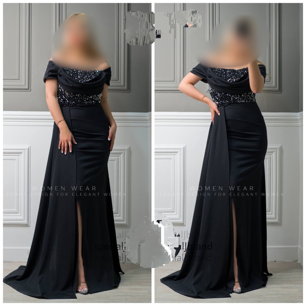 جنس : کرپ کش و پولک مخملی (قد۱۶۰)(زیپداره)(بند دکلته داره)(باندی چاک ۶۰ سانت)